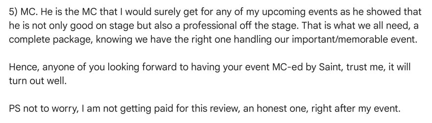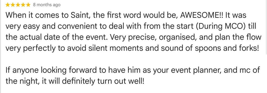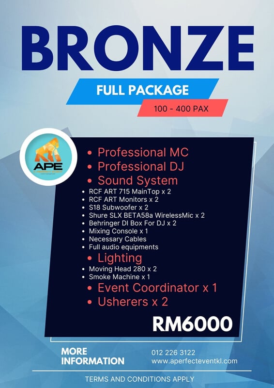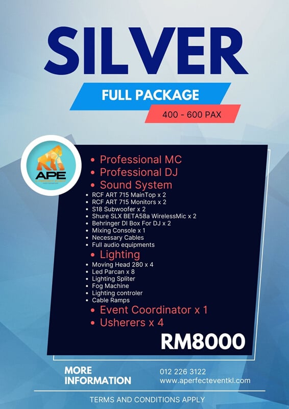 This Package give you the full service that is needed to run A Perfect Event that accommodates 400 - 600 pax.